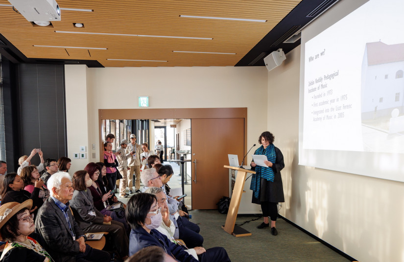 A japán nagyvárosban zajló idei Expo magyar pavilonjában Csaba Gábor kulturális diplomáciáért felelős helyettes államtitkár mellett Fekete Gyula, a Zeneakadémia nemzetközi és tudományos rektorhelyettese, valamint Rajk Judit, a Kodály Intézet igazgatója is előadást tartott.