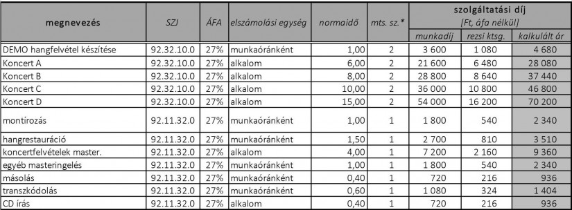 AUDIOTECHNIKAI SZOLGÁLTATÁSOK: